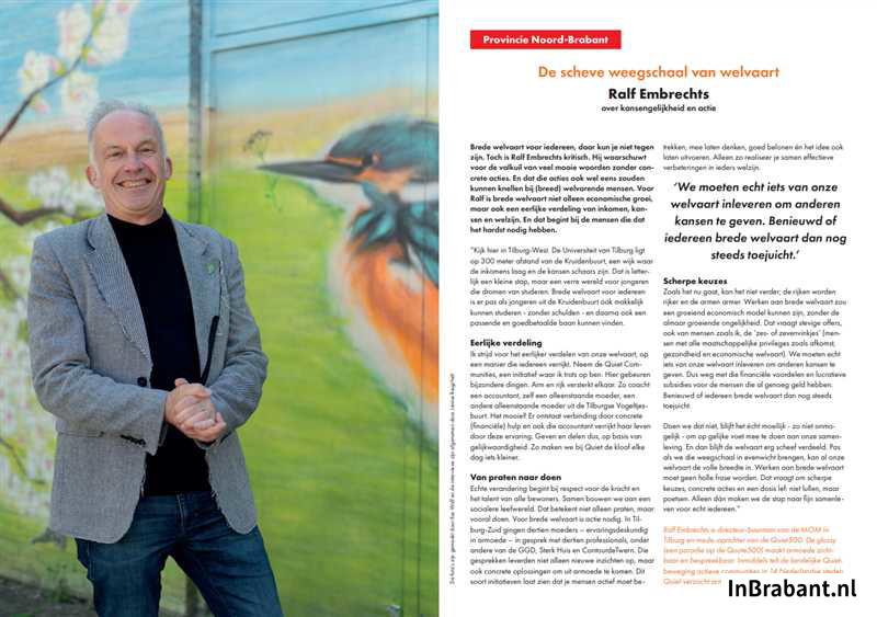 Ralf Embrechts is directeur-buurman van de MOM in Tilburg en mede-oprichter van de Quiet500. De glossy (een parodie op de Quote500) maakt armoede zichtbaar en bespreekbaar. Inmiddels telt de landelijke Quiet-beweging actieve communities in 14 Nederlandse steden. Quiet verzacht armoede en versterkt mensen.
